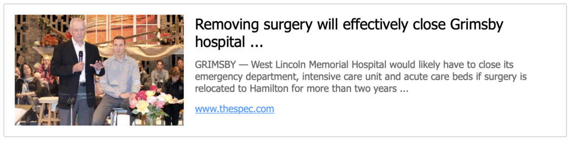 “This proposal is effectively a closure of West Lincoln Memorial Hospital,” Dr. Matthew Noble Wohlgemut states in a letter Friday to the Hamilton Health Sciences board and CEO Rob MacIsaac……..